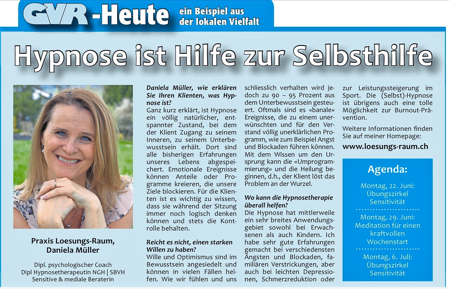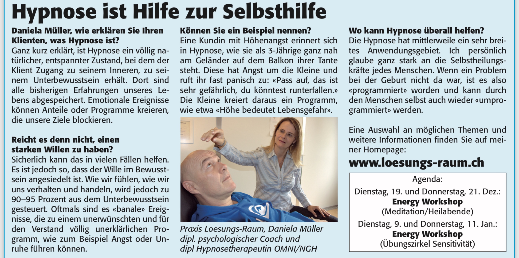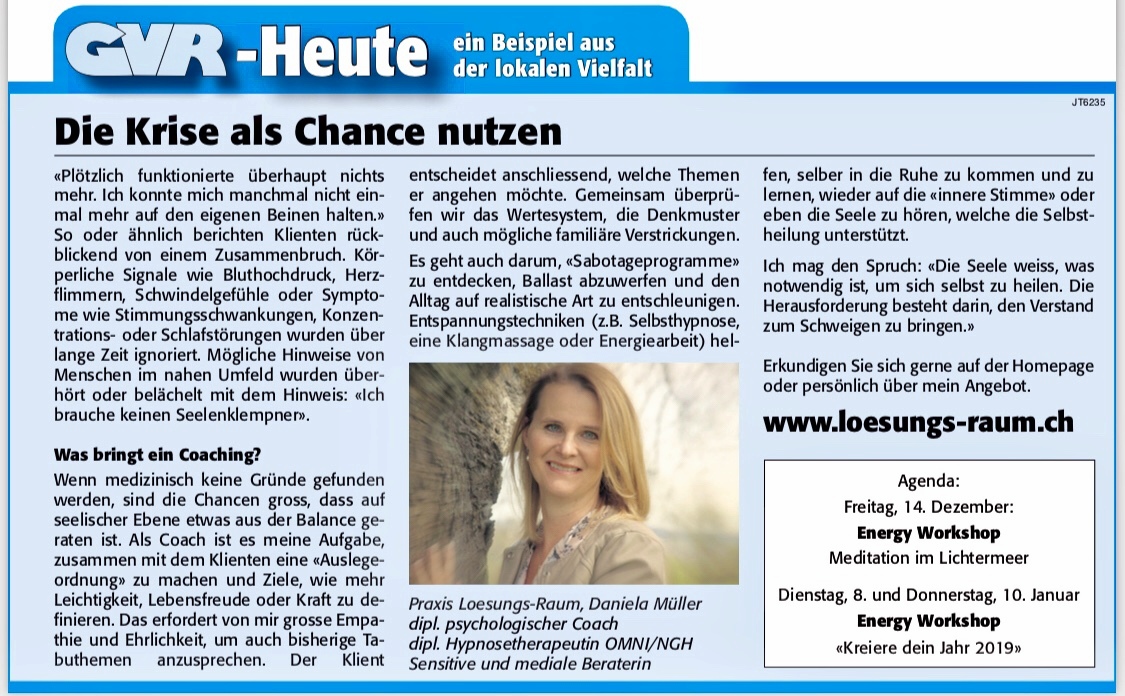Mit freundlicher Genehmigung des Zürcher Unterländers. Artikel erschienen am 15.5.20 https://www.zuonline.ch/hypnose-als-problemloeser-581035458779